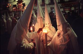 Its a well known fact that everything in the Catholic program; their traditional symbols [even the crucifix] and dress of their clergy are stolen from the Pagan world. The Vatican alone is covered in Pagan images stolen from the world they tried to destroy, steal and cover up. Along with the corruption of the concepts behind them, to create their program. Here we will look into the connection between the holiday and ritual wear of Semana Santa and where its stolen origins are from. [This has to do with the Ku Klux Klan, and the design of their robes, masks and pointed hats]